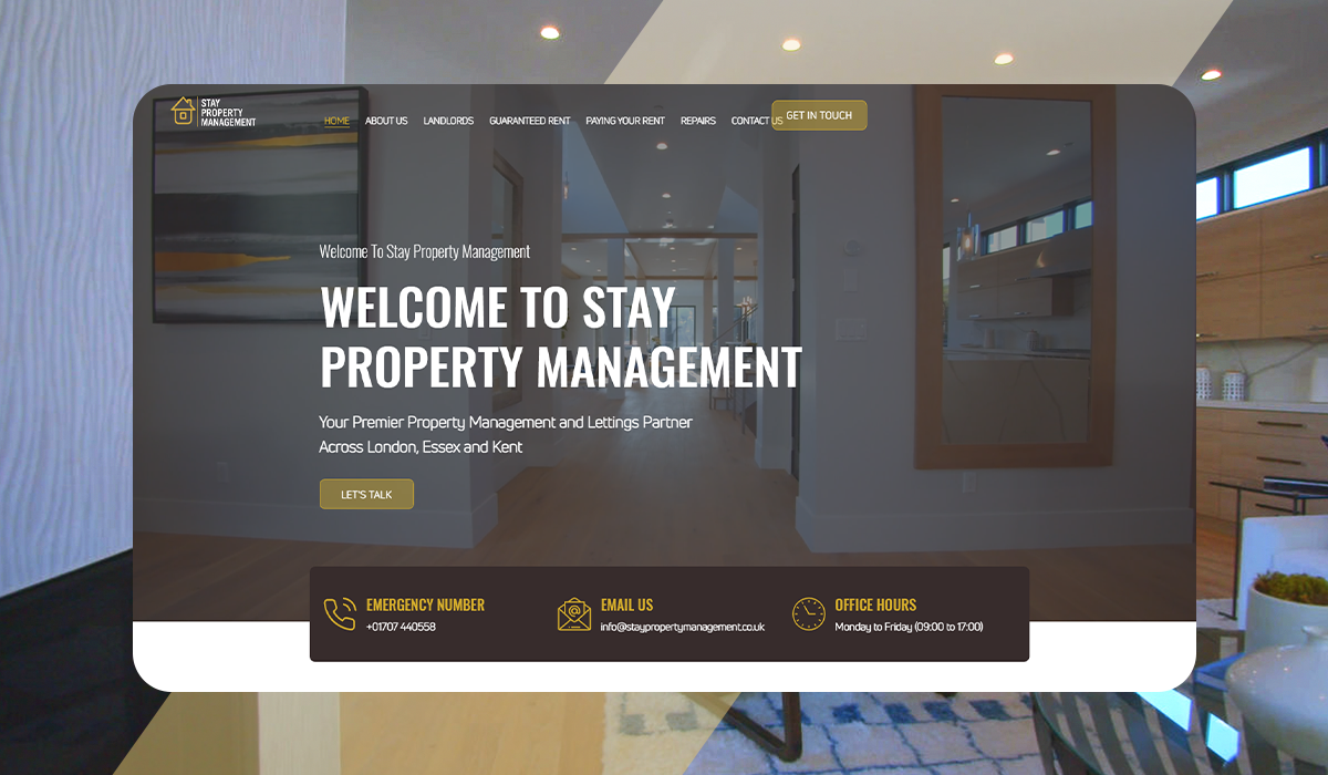 The Client 🏠 Stay Property Group is a London-based property management company offering hassle-free solutions for landlords, tenants, and investors. From lettings and maintenance to compliance, they help clients maximise rental income and keep properties running smoothly.